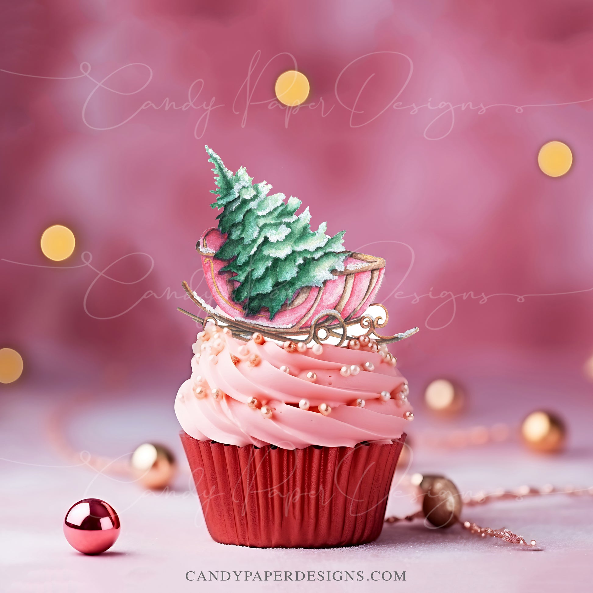 Add a Unique and Charming Touch to Your Christmas Treats with Our Pink Sleigh Christmas Topper. This topper is perfect for those looking for a modern, soft festive decoration. Made from high-quality wafer paper (0.6mm thickness), these decorations are perfect for cupcakes, cookies, cakes, and more!!. this design blends classic holiday spirit with a contemporary pink touch, perfect for any celebration table.